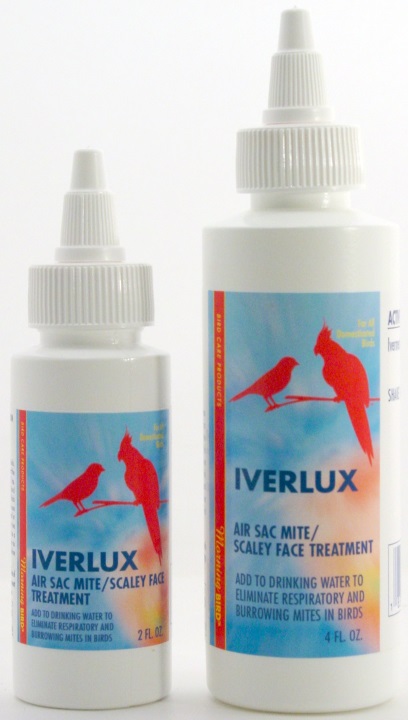 IVERLUX is a treatment for Air Sac Mite and Scaly Face (and leg) Mite infections.