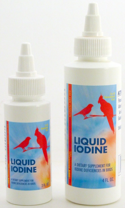 LIQUID IODINE is a dietary supplement designed to address iodine deficiencies in birds. Iodine is required for proper thyroid functioning. Iodine deficiencies can result in difficult moults, poor feather condition, breathing and singing problems, inactivity and poor breeding. LIQUID IODINE provides the extra dietary iodine needed by Australian finches and eliminates balding in Gouldian finches.